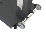 stufenloses Heben und Senken des eingespannten Fahrrades. Für eine Bodenausgleichsfunktion ist die stabile Bodenplatte mit 4 justierbaren Stellfüßen ausgestattet.