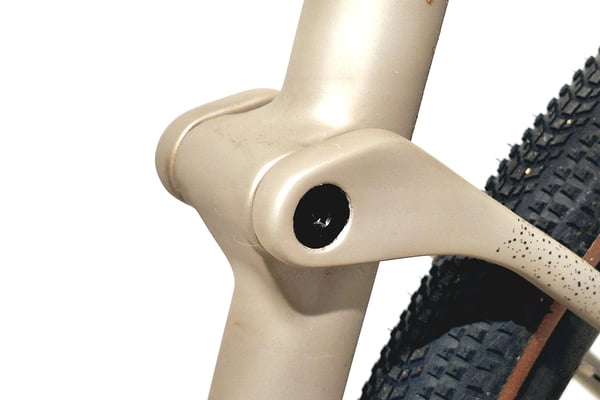 Bodenvibrationen, die auf den Fahrer einwirken, entgegenwirkt. Das Rad verfügt über eine Dämpfungszone am Verbindungspunkt von Sitzrohr und Sitzstreben, die einen Elastomerkörper enthält. Durch