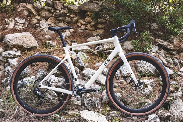 Gravelreisen optimierten Kit mit allen notwendigen Montagepunkten. Hier kommen unter anderem der Schwalbe G-One Bite Reifen, die SCIU Explorer Carbon Gabel und die SRAM XPLR-Schaltgruppen mit