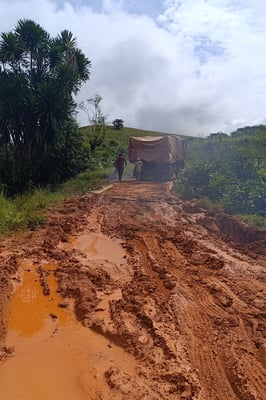 eine Matschpiste, sumpfige, extrem rutschige Abschnitte sowie aufgrund ihrer Tiefe kaum passierbare Pfützen, für die diese Straße berühmt-berüchtigt ist.