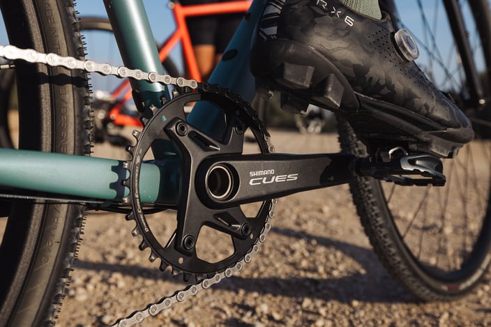 Die 6000er-Serie der SHIMANO CUES 10- und 11-fach-Komponenten ist mit hydraulischen Scheibenbremsen ausgestattet, die eine leistungsstarke Bremsleistung und reibungslose Schaltqualität bieten.