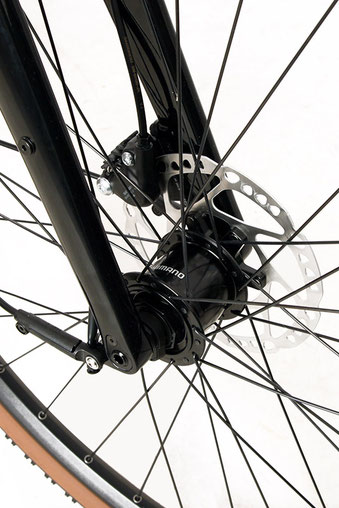 - Beleuchtung: Shimano Sport Nabendynamo UR-705 mit Steckachse, Axa Blueline 30, Axa Blueline Rear